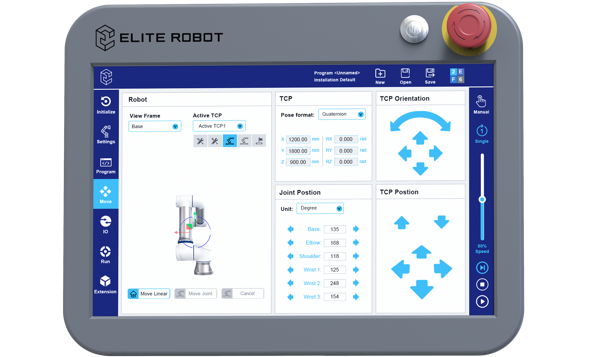 艾利特CS系列協(xié)作機器人采用新型的輕量寬屏示教器,用戶界面經(jīng)過重新設(shè)計,操作直觀,支持觸屏控制。基于對用戶使用習(xí)慣的理解,艾利特優(yōu)化了編程流程,并簡化了編程步驟,只需在示教器上點擊幾下,便可完成編程,從而減輕用戶學(xué)習(xí)負(fù)擔(dān),上手更快速,幫助用戶和集成商加快項目開發(fā)周期。用戶能充分體驗到CS系列簡約現(xiàn)代的外觀,以及工具欄中醒目而直觀的圖標(biāo),導(dǎo)航更方便,使用更流暢。