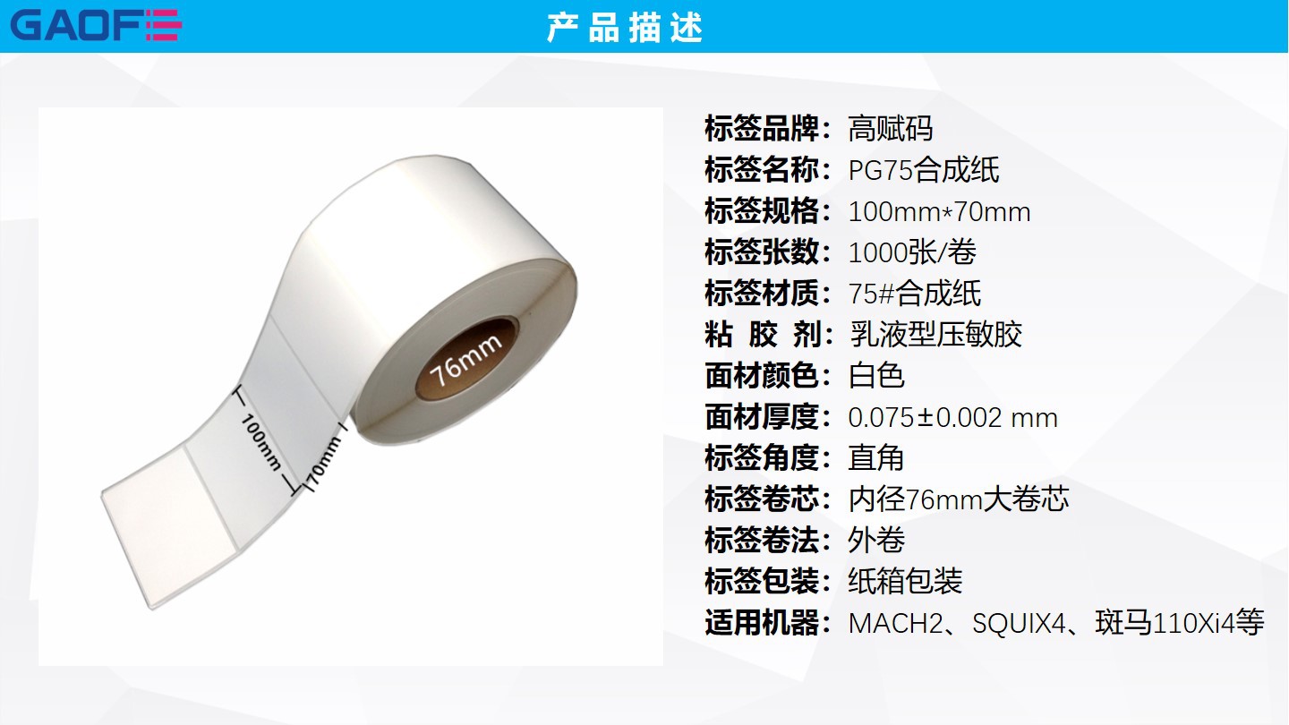 75番合成紙 100mm*70mm 外箱貼紙 PP標(biāo)簽 防水防油標(biāo)簽紙-高賦碼