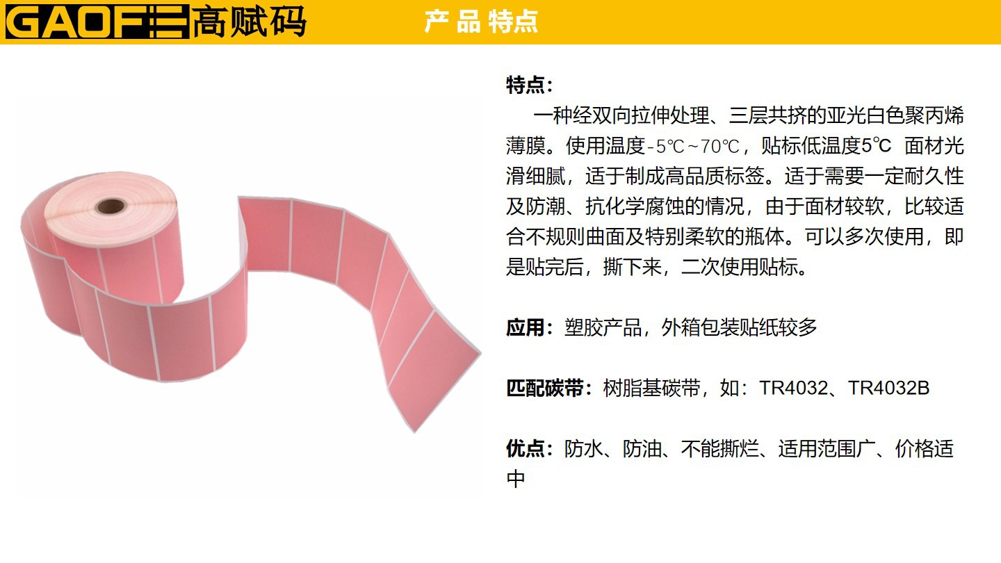 彩色標(biāo)簽紙 粉色可移合成紙90mm*50mm PP標(biāo)簽紙 可二次使用-高賦碼