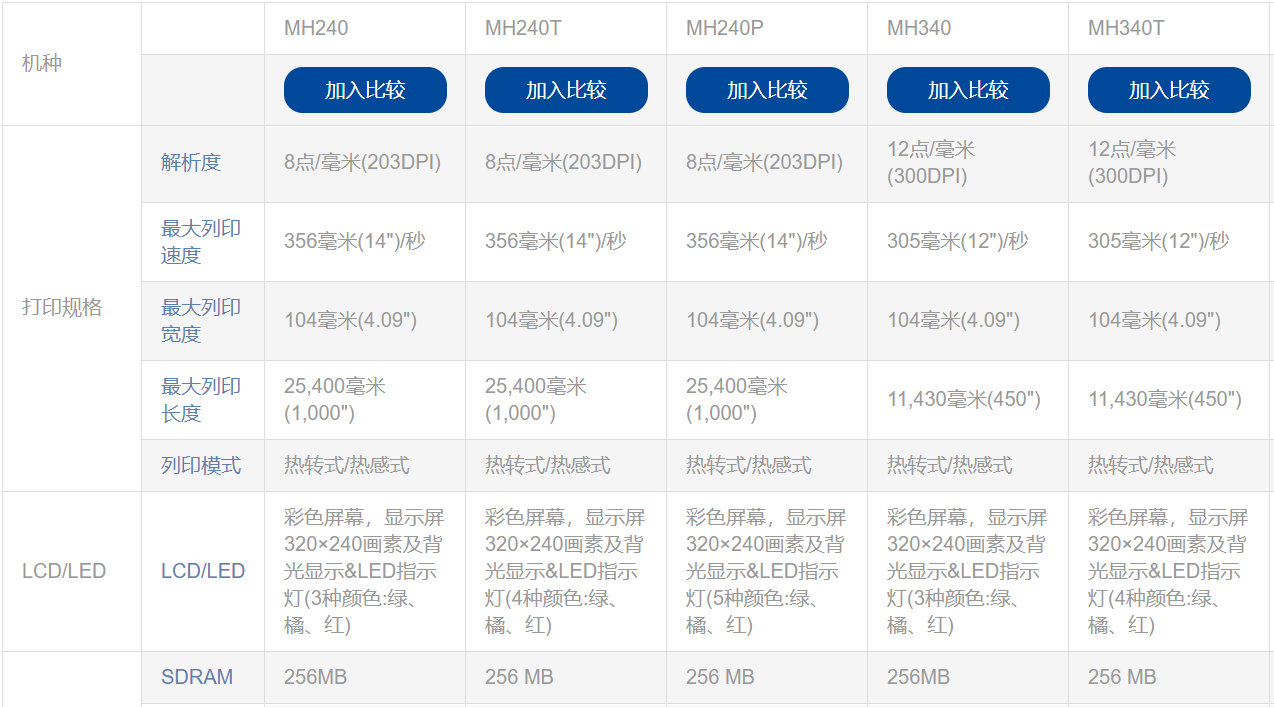 MH240系列可列印于多種標(biāo)簽格式,舉凡醫(yī)療業(yè)藥品標(biāo)示、電子產(chǎn)品標(biāo)簽、珠寶標(biāo)簽到物流運(yùn)輸標(biāo)簽等均適用。該系列包含共9款型號(hào),其中203 dpi,最高列印速度達(dá)每秒14英吋的機(jī)型為MH240/ MH240T/ MH240P、300 dpi最高列印速度達(dá)每秒12英吋的機(jī)型為MH340/ MH340T/ MH340P與600 dpi高解析的機(jī)型為MH640/ MH640T/ MH640P適合于高密度二維條碼、圖示、小字或其他超高解析列印需求之圖形標(biāo)簽。
