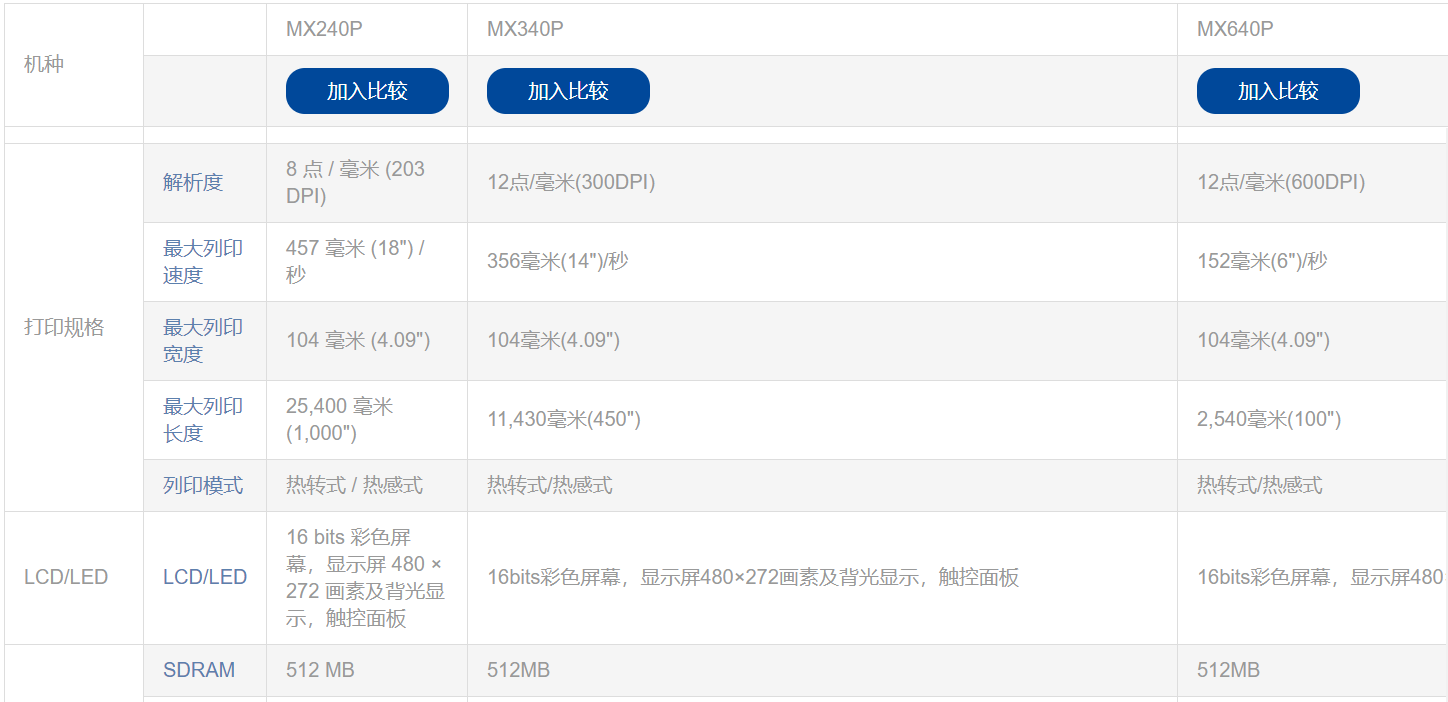 MX240P系列包含203 dpi,最高列印速度達(dá)每秒18英吋的MX240P、300 dpi最高列印速度達(dá)每秒14英吋的MX340P與600 dpi的MX640P適合于二維條碼、圖示、小字或其他超高解析列印需求之圖形標(biāo)簽。