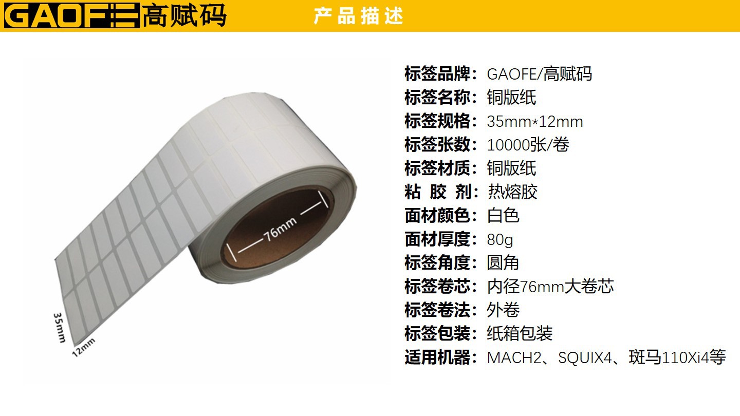 商品條形碼標簽 35mm*12mm銅版紙不干膠 價格標簽 空白標簽高賦碼