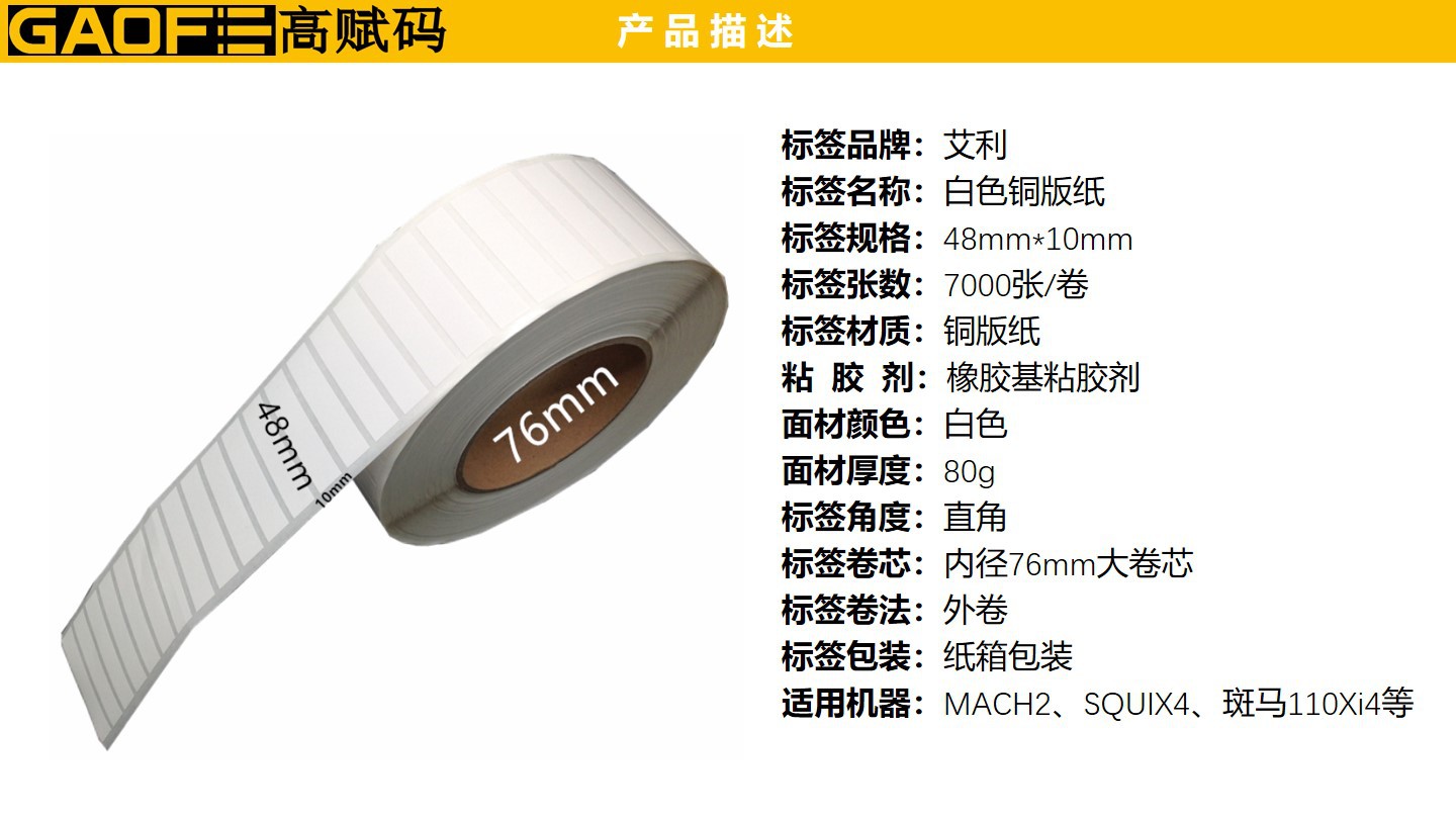 48mm*10mm條碼標(biāo)簽 強(qiáng)粘性標(biāo)簽 5209銅版紙 出貨紙標(biāo)簽-高賦碼