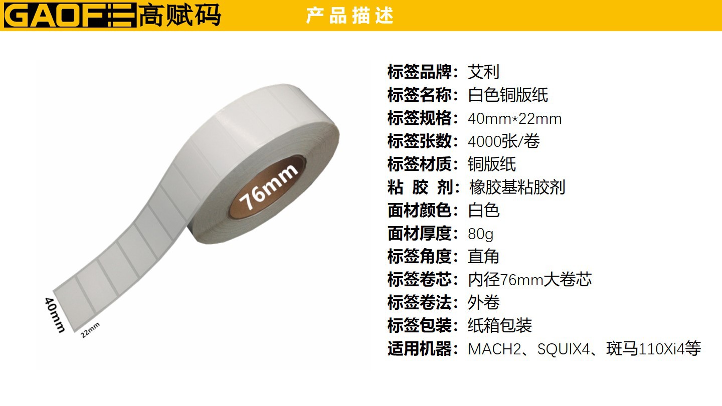 條碼標(biāo)簽 強(qiáng)粘性標(biāo)簽 5209銅版紙 40mm*22mm 出貨紙標(biāo)簽-高賦碼