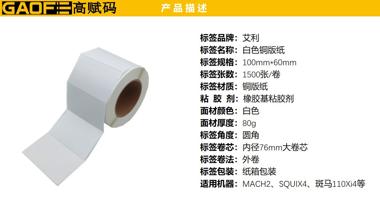 100mm*60mm條碼標(biāo)簽 強(qiáng)粘性標(biāo)簽 5209銅版紙 出貨紙標(biāo)簽-高賦碼