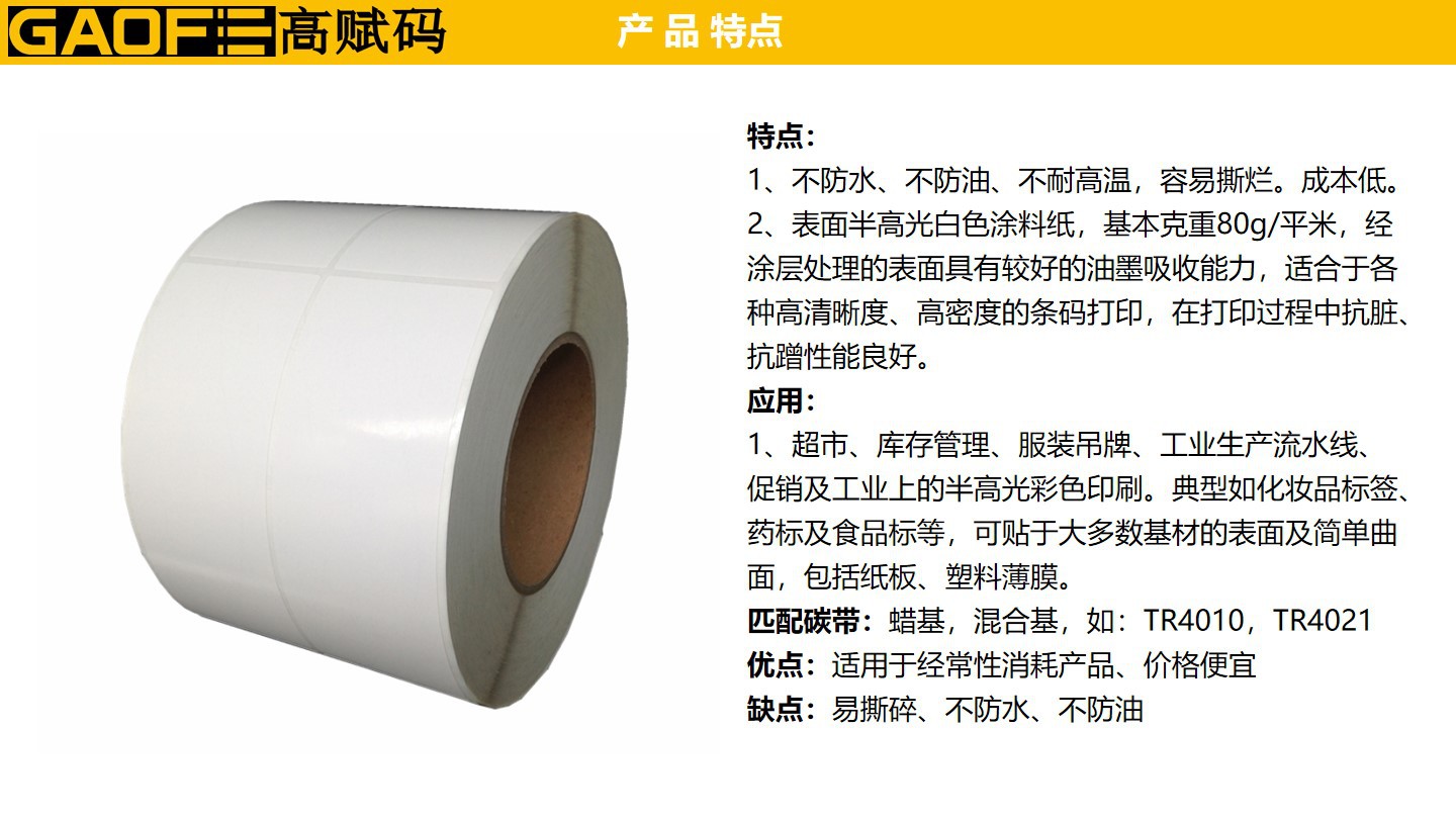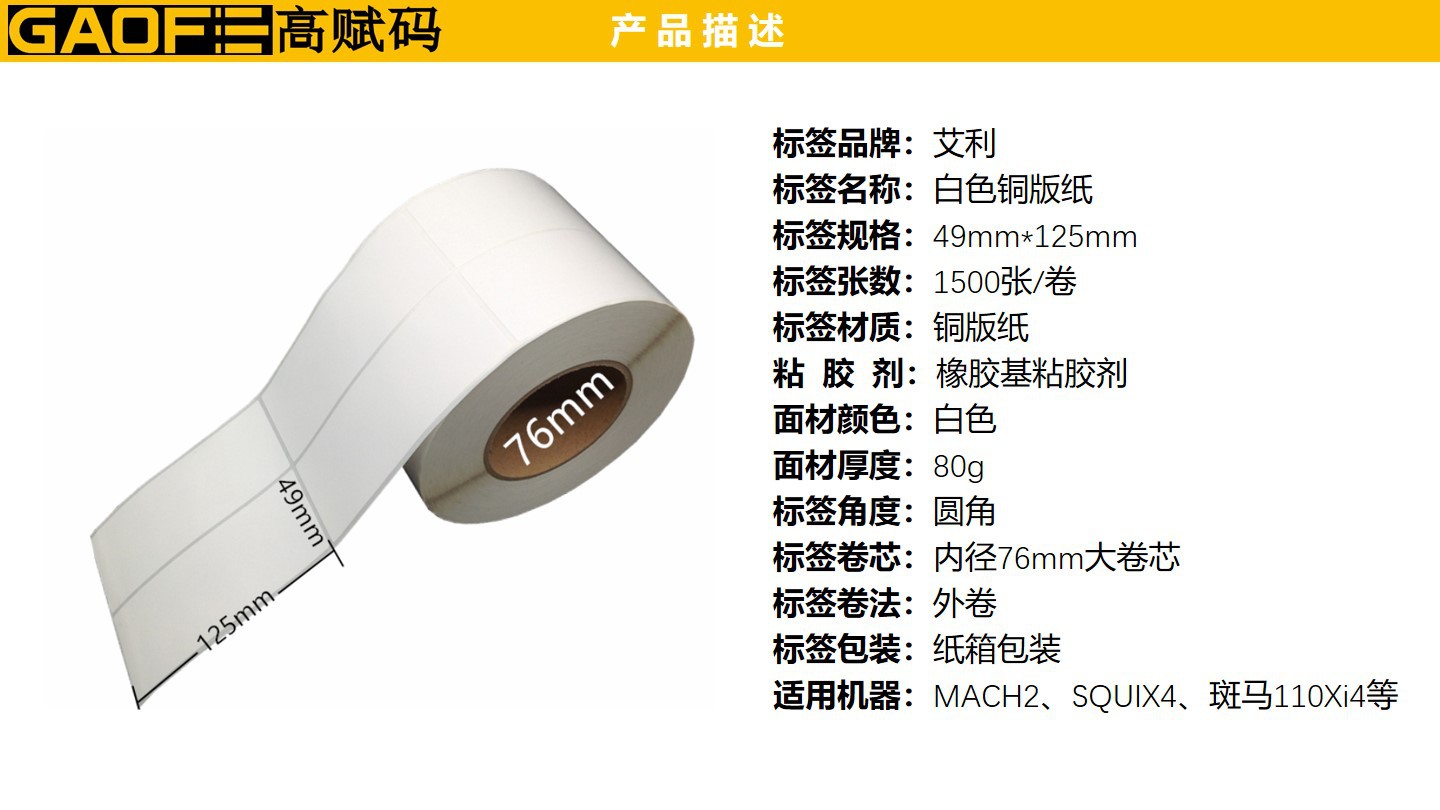 出貨紙標簽49mm*125mm 條碼標簽 強粘性標簽 5209銅版紙-高賦碼