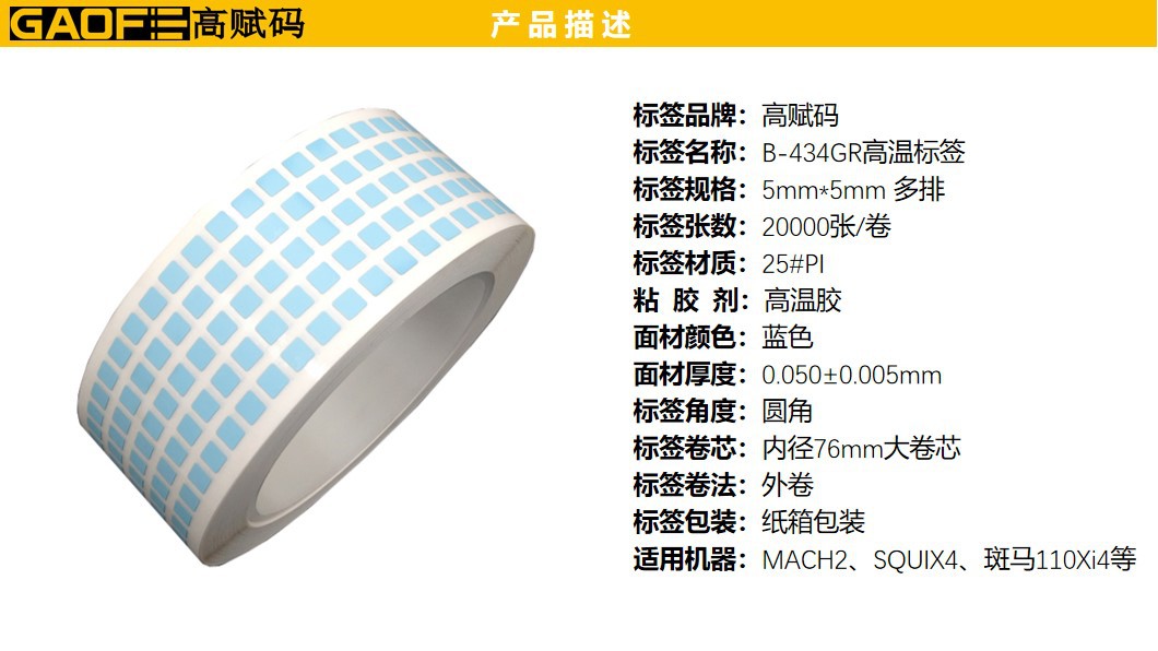 高溫標(biāo)簽 B-434GB 藍(lán)色高溫PI 5mm*5mm 電子行業(yè)-高賦碼