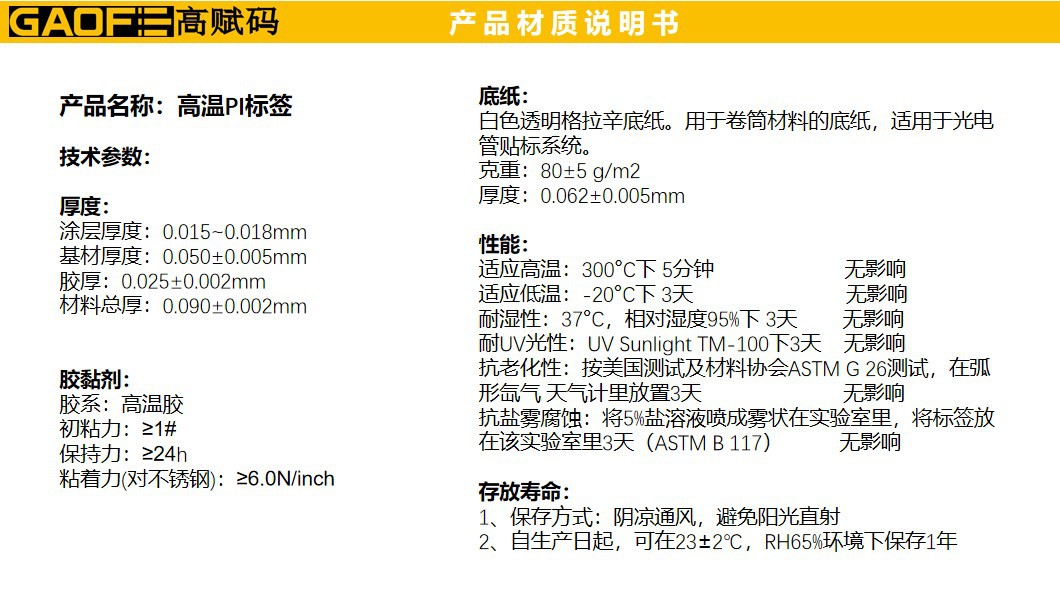 PI耐高溫標(biāo)簽