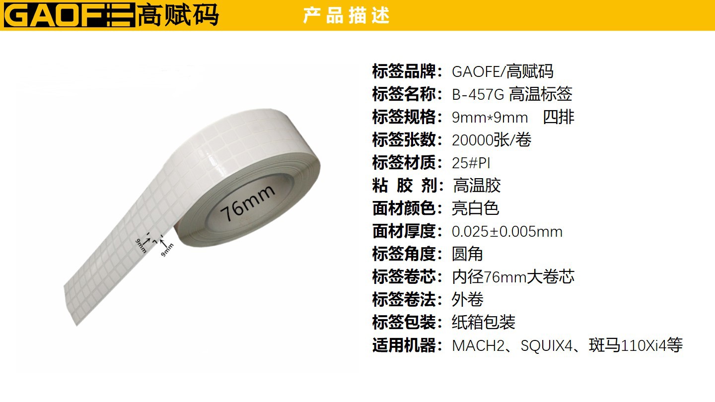 高溫標(biāo)簽 B-457G 9mm*9mm 線(xiàn)路板高溫標(biāo)簽 可過(guò)錫爐回流焊-高賦碼