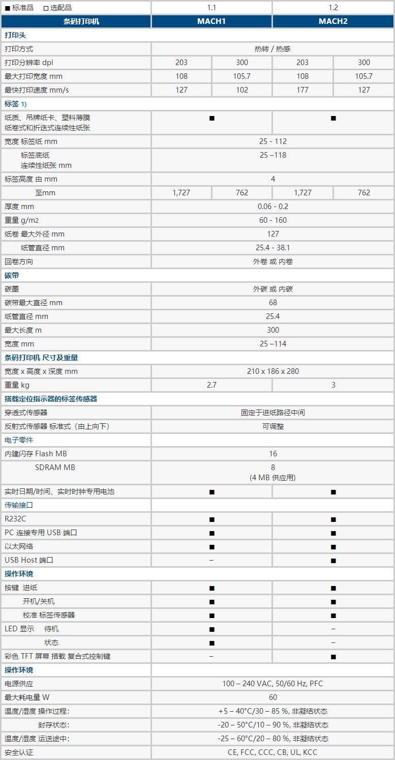 條碼打印機(jī) MACH1/2 機(jī)型總覽