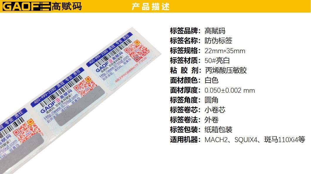 22mm*35mm 防偽標(biāo)簽 50#白色大字VOID 彩色涂層高光亮白 高賦碼