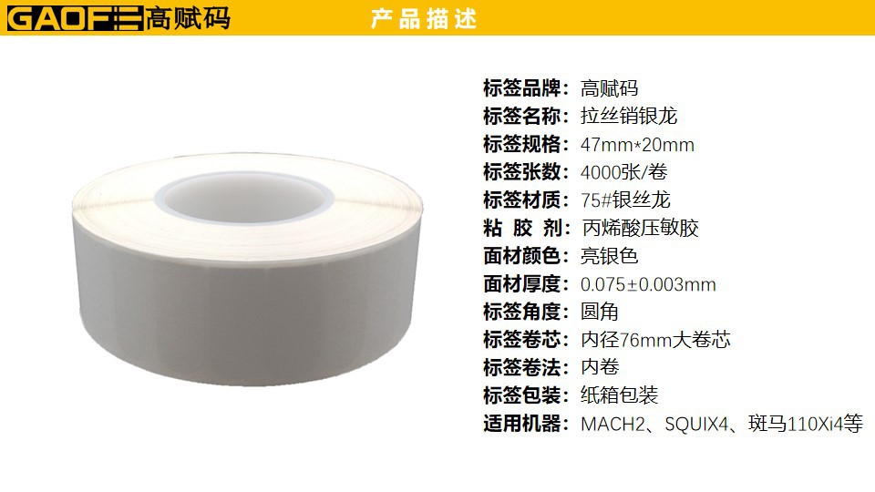拉絲銷銀龍 激光打標(biāo)機(jī)專用標(biāo)簽 高賦碼品牌標(biāo)簽 47X20MM 定制-高賦碼