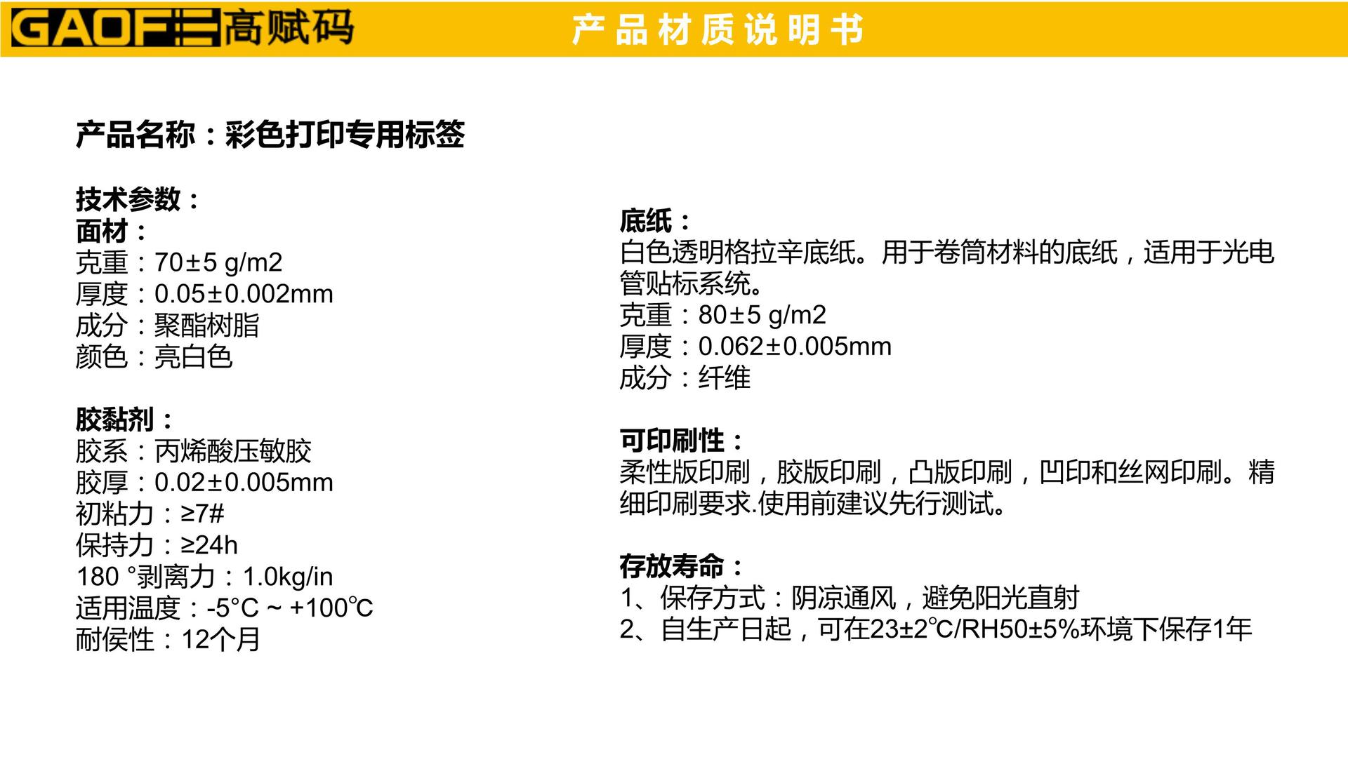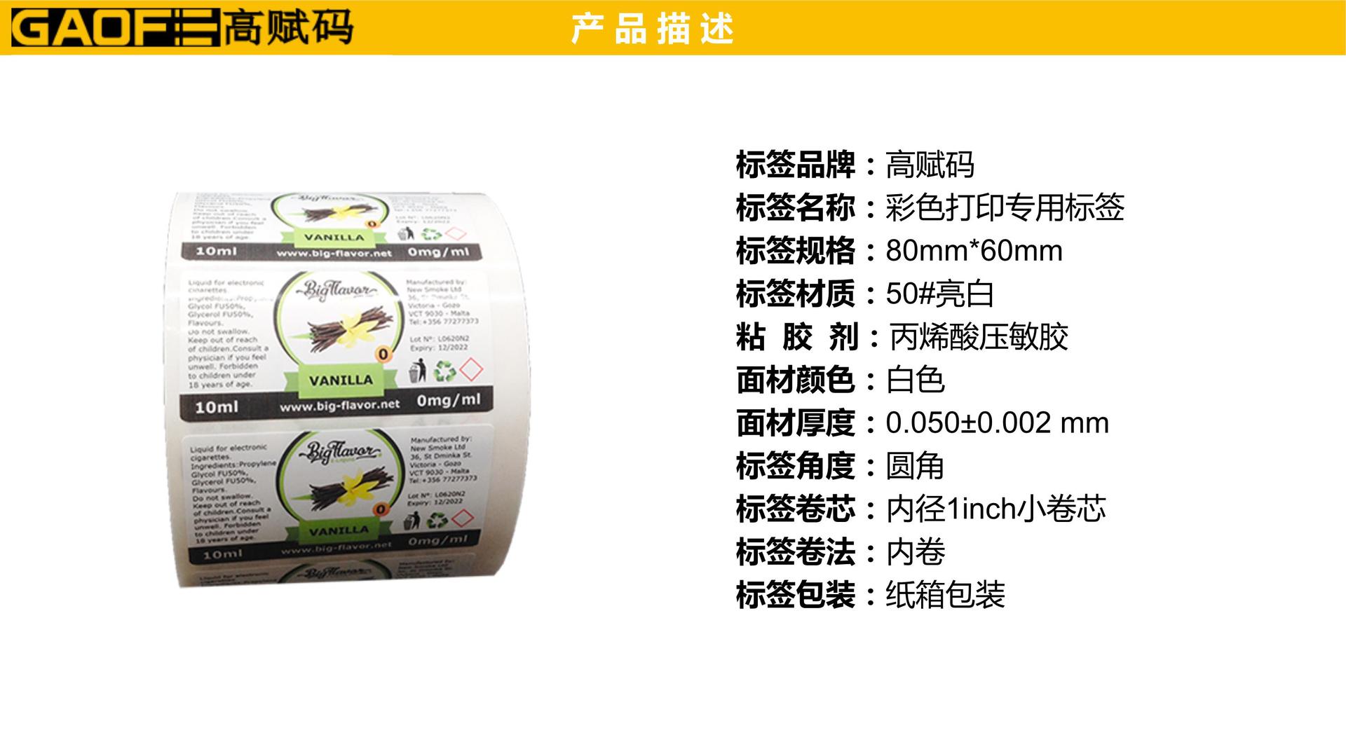 彩色打印機專用標簽