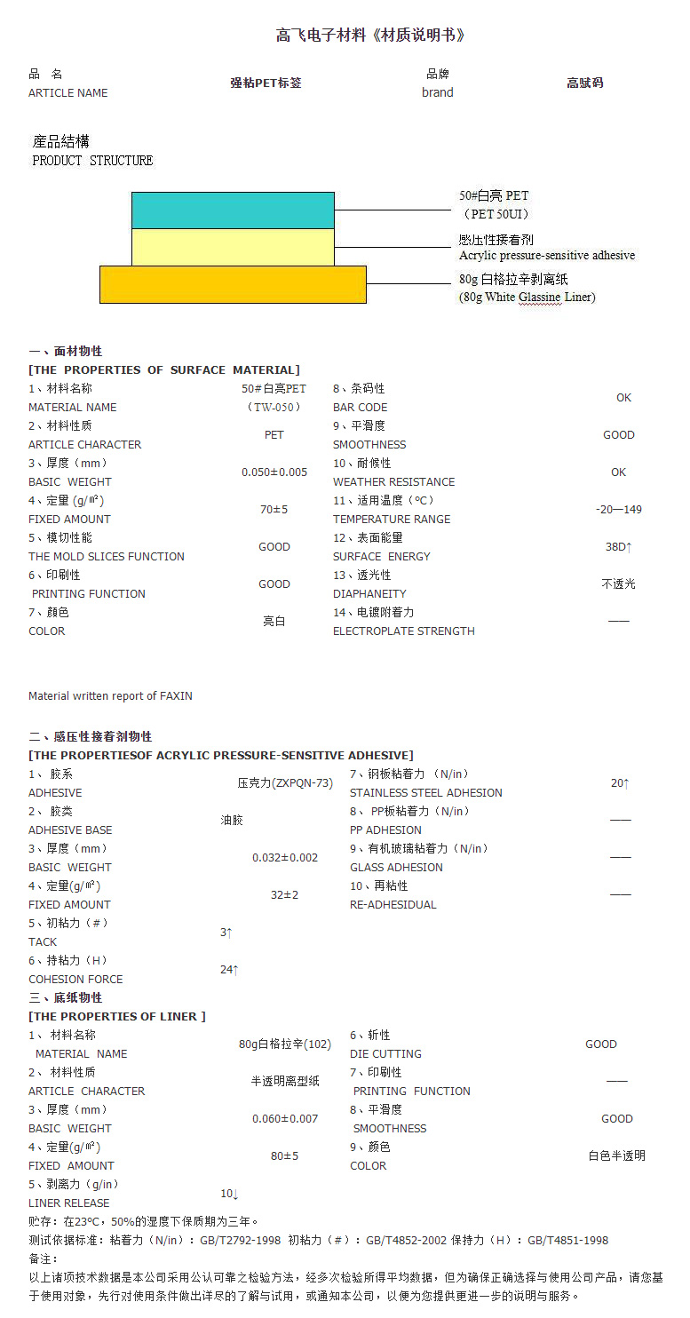 強(qiáng)粘PET標(biāo)簽