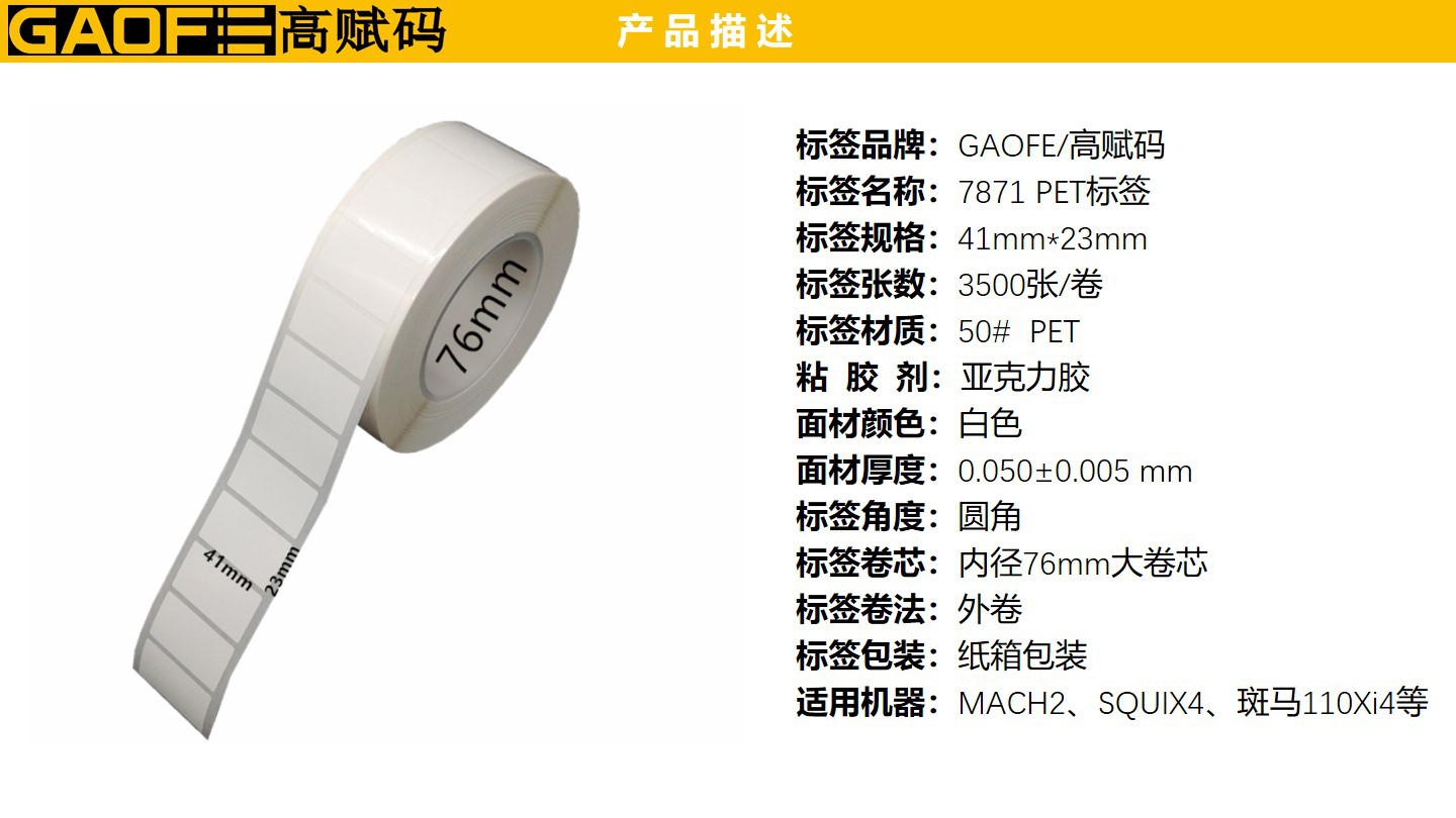 7871 超粘不干膠PET標(biāo)簽 強粘PET貼紙 41mm*23mm PET標(biāo)簽-高賦碼