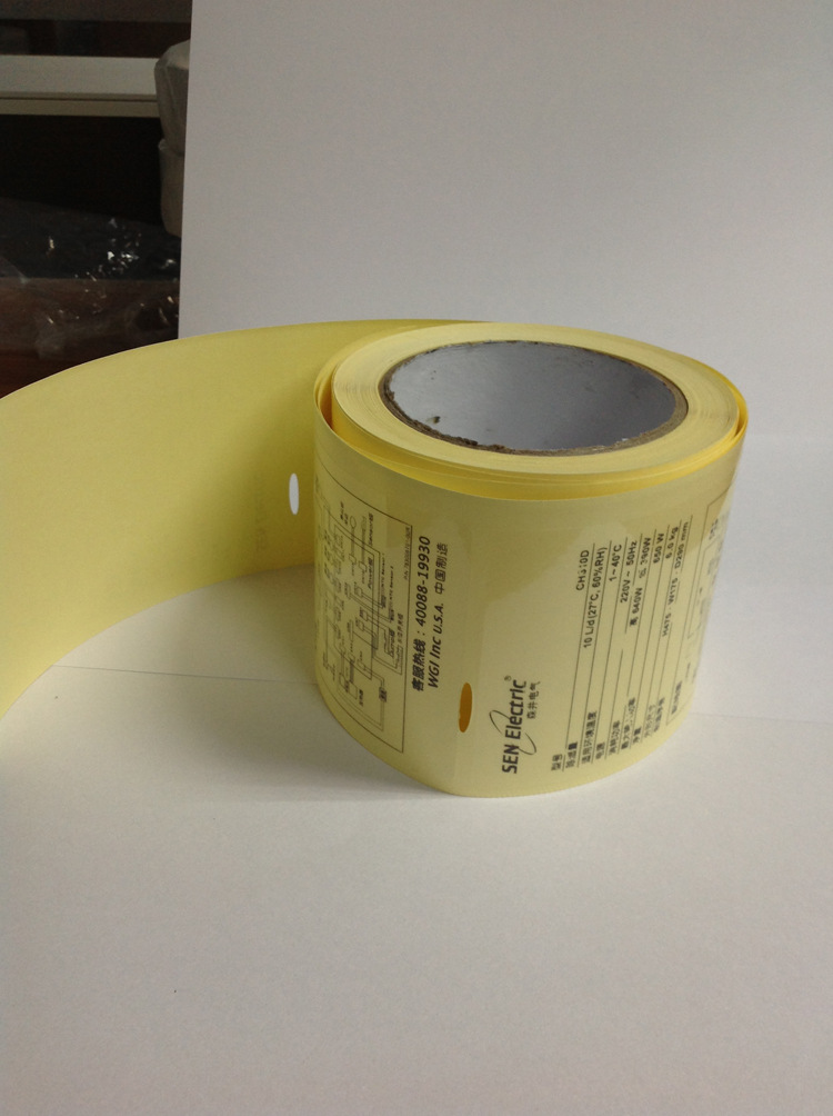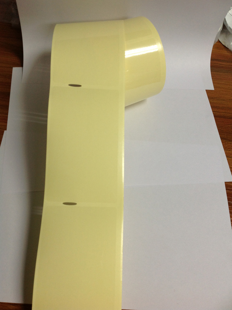 基材:25um(或50um)涂層處理聚酞亞胺薄膜,未經(jīng)涂層處理的聚酞亞胺不能滿足性能要求、涂層處理能更加地滿足工藝上所需的打印條碼性以及對(duì)材料顏色與光澤度的要求。