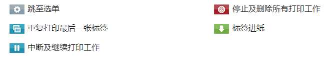 2 狀態(tài)列:接收打印資料、記錄資料串流、碳帶警示、插入 SD 記憶卡/U 盤、藍(lán)芽、WLAN 無線網(wǎng)絡(luò)、以太網(wǎng)絡(luò)、USB Slave 傳輸接口、時(shí)間