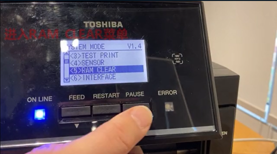 1.關(guān)機——同時按住FEED鍵和PAUSE鍵——開機——顯示屏顯示英文可以松開FEED和PAUSE鍵了——啟動后進(jìn)去系統(tǒng)設(shè)置模式。