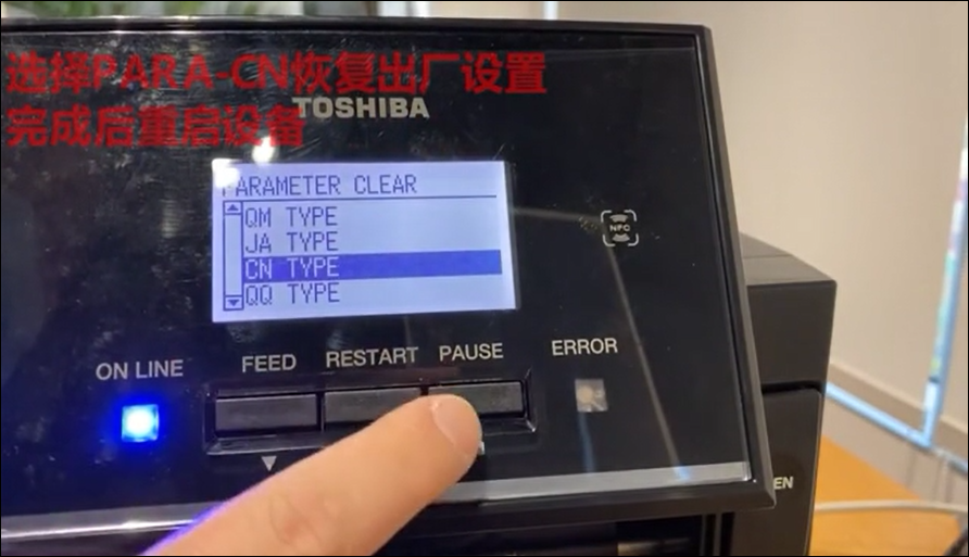 4.選擇 CN TYPE——按PAUSE鍵確認(rèn)——等待出廠設(shè)置完成——重啟打印機。