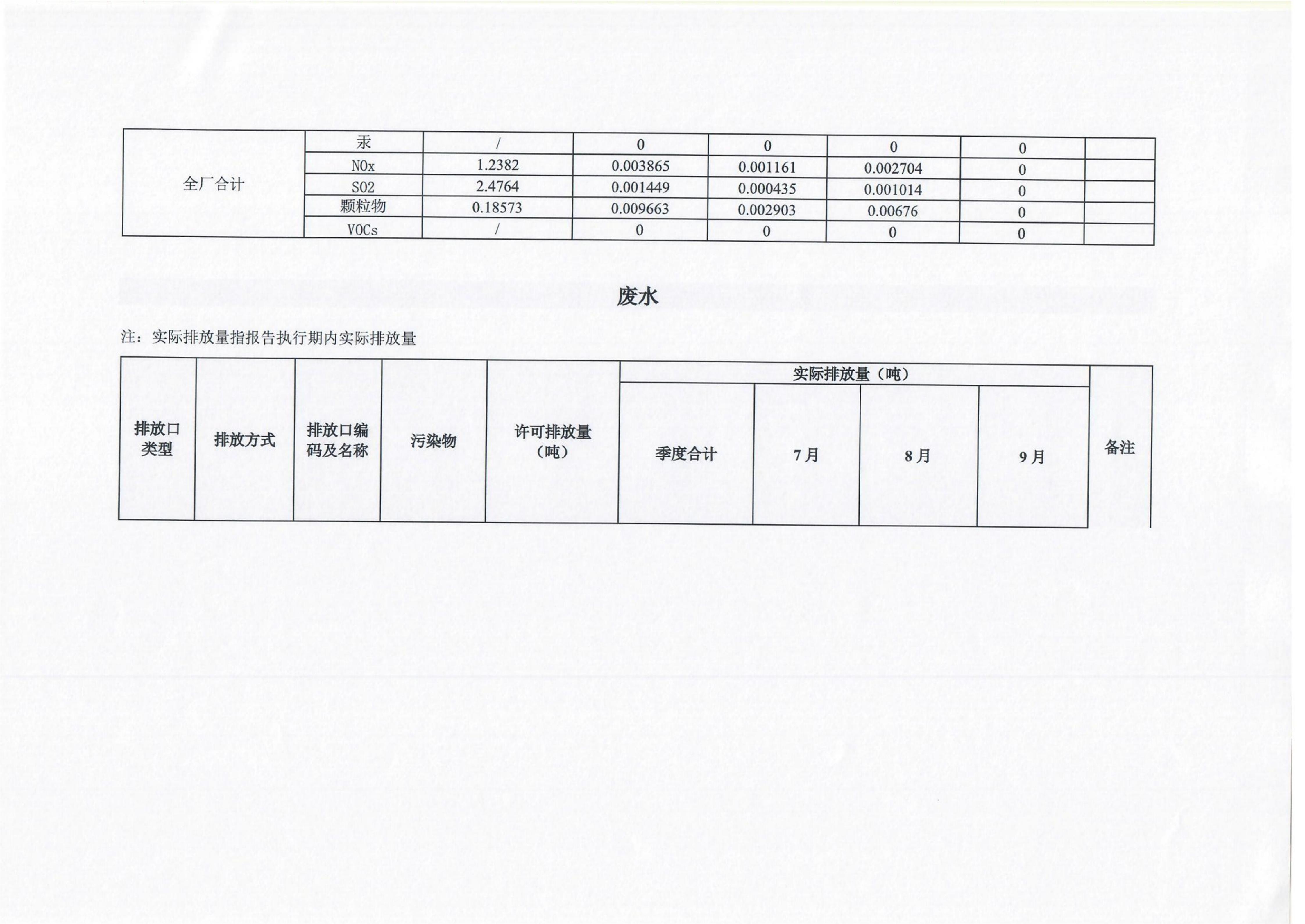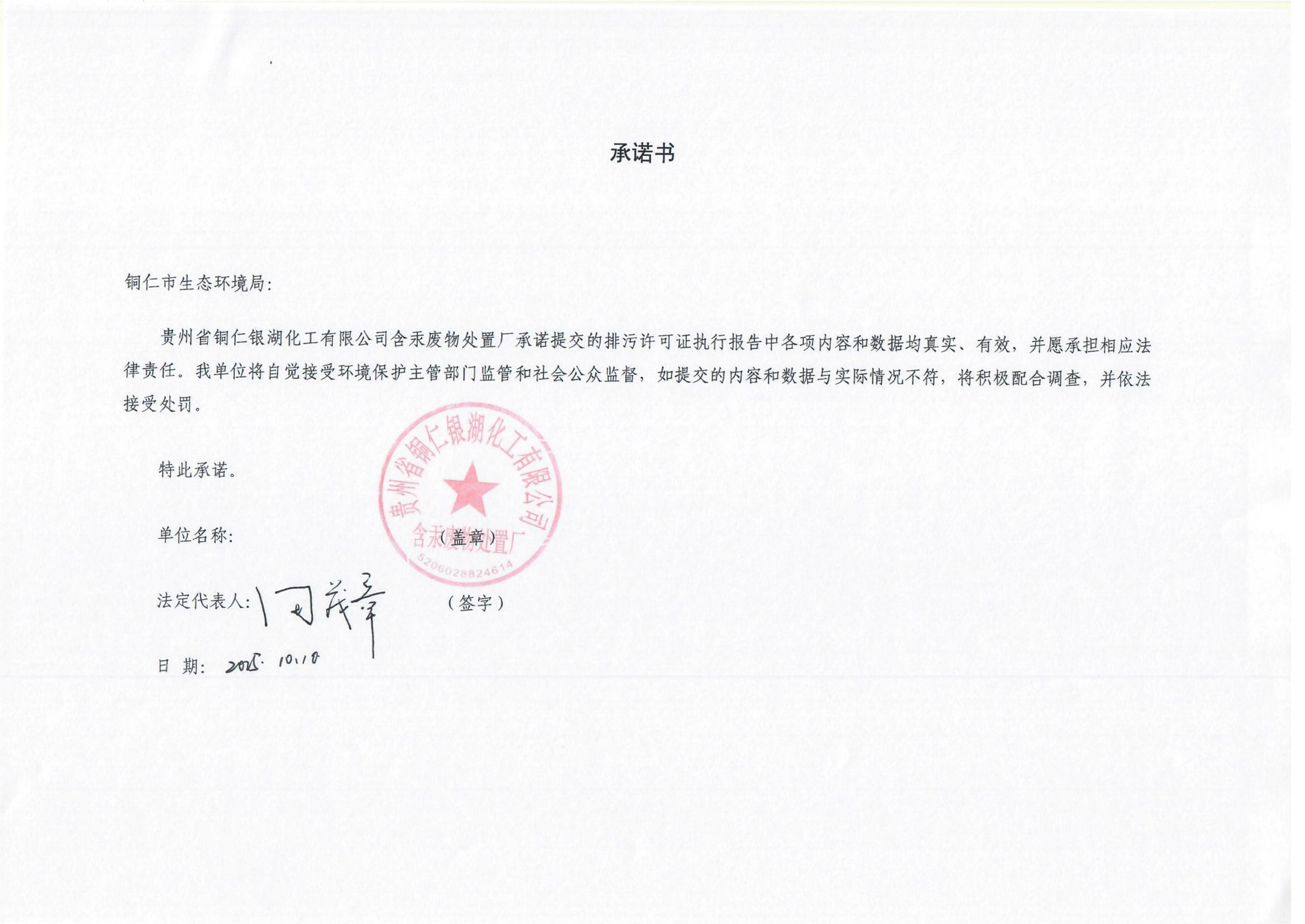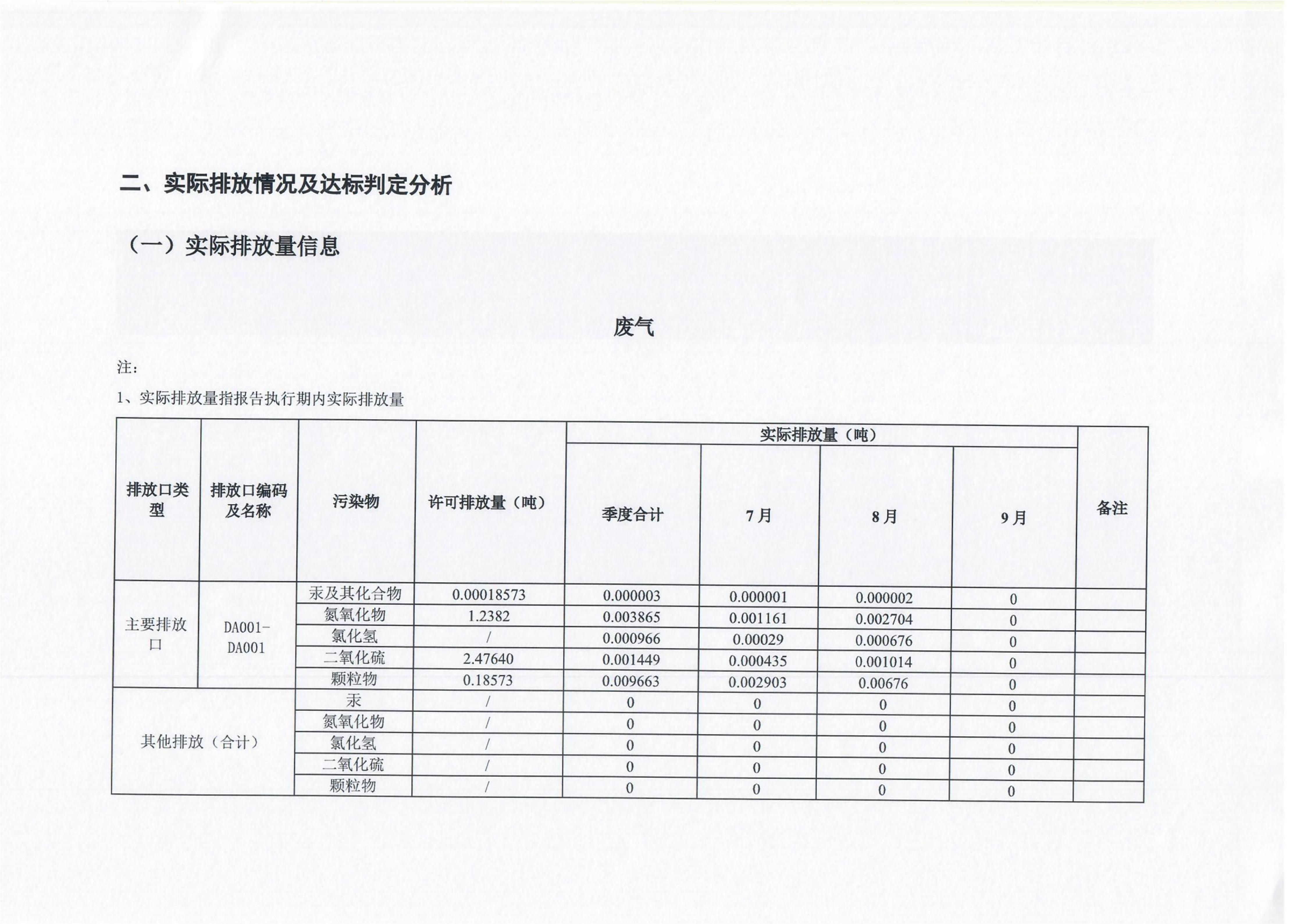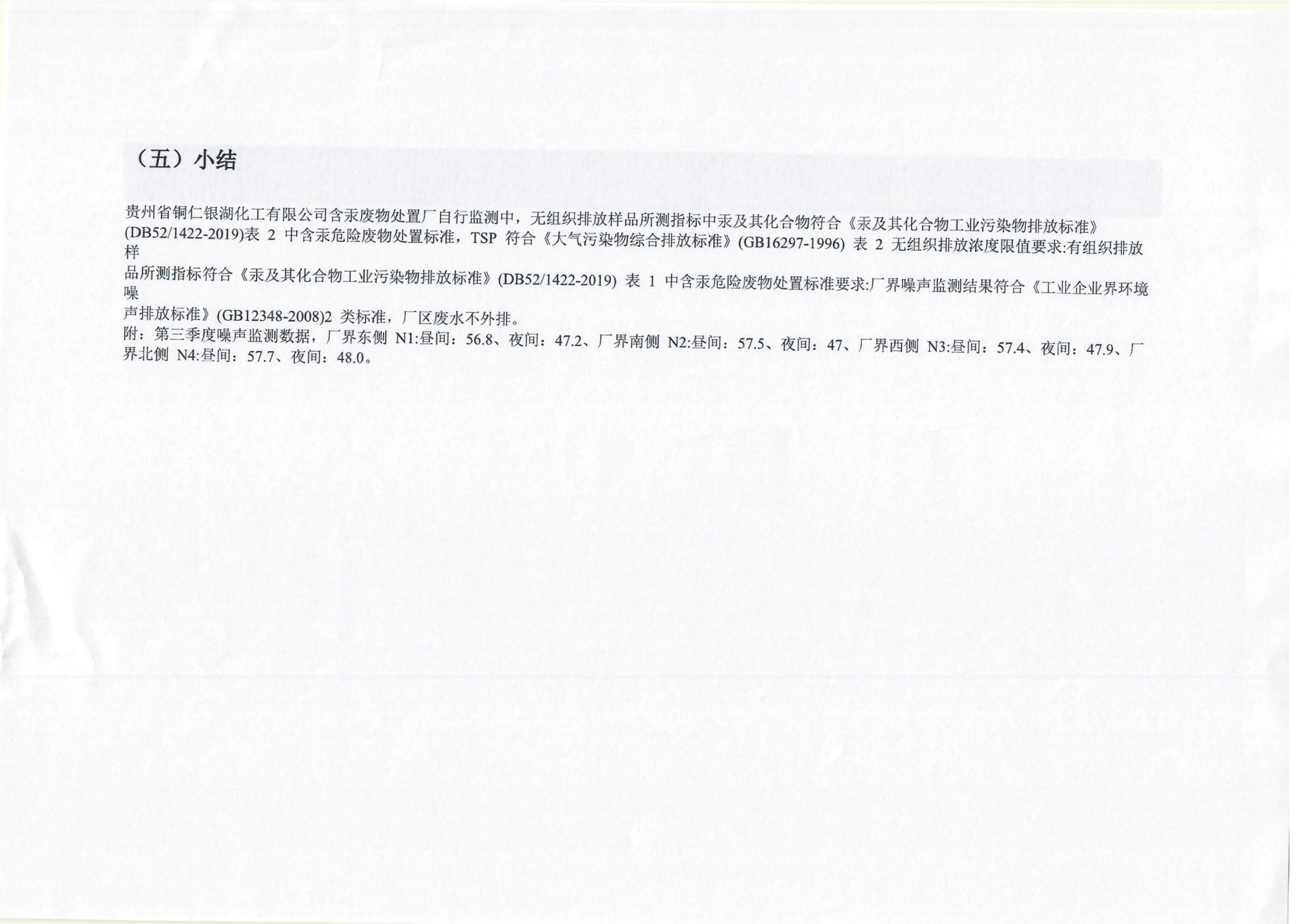 貴州省銅仁銀湖化工有限公司含汞廢物處置廠第三季度排污許可證執行報告